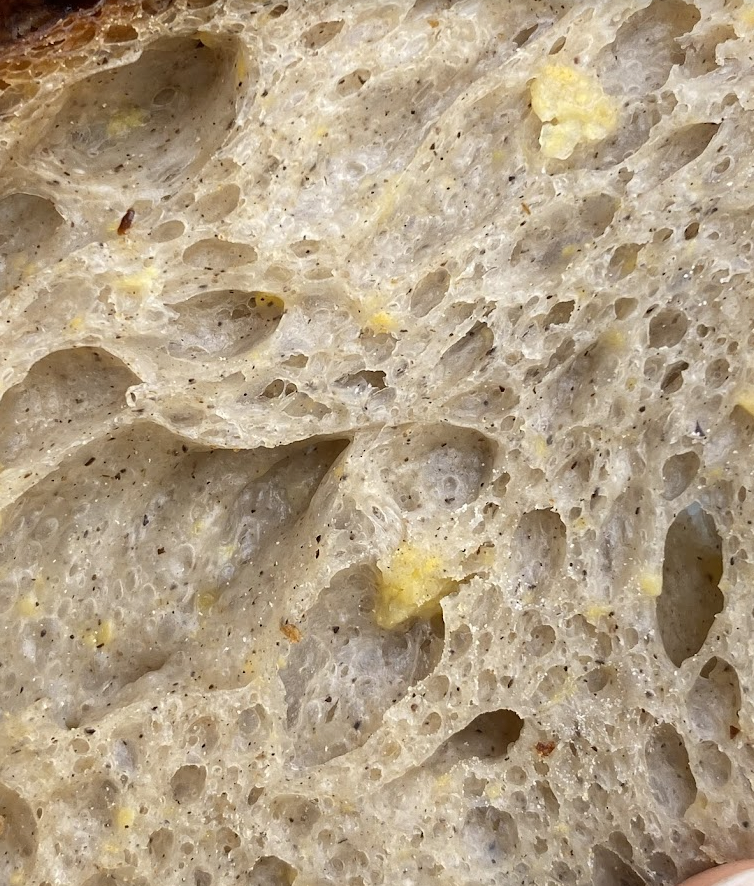 This boulangerie by Place des Vosges is a globally excellent place–for food, price to quality, and a consistently lovely and efficient service. The patisseries are beautiful even though the tart base gets a bit repetitive–always a kind of sablé breton. For me, the winner however is the beautiful sourdough bread (meule céréales; polenta et herbes fraîches) which you can get a quarter of, sliced, for around 3 €. Fresh sourdough bread full of air holes and that oven-fresh yeasty, chewy texture. (Their ice-cream next door is pretty good too and they do catering online.)