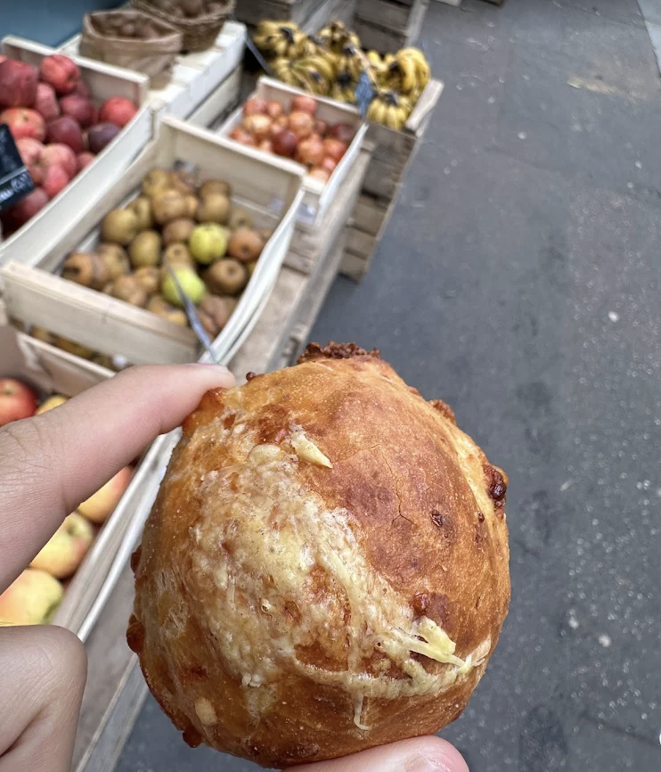 Fast forward to my life in Paris. I am not thinking about cheese buns, except sometimes I do think about them, but never did I ever imagine that I would meet cheese buns again. That is until, Terroirs d’Avenir ! Everything at Terroirs d’Avenir (and not just the boulangerie, but the boucherie, and the primeur) is great. The Kouign-amann is the most buttery, flaky, sinful thing. Sometimes, they even have a Provence speciality, the pissaladière (a savory tart of anchovies and onions). And the cheese bun, oh–the cheese buns are kinda like the homecoming that you did not expect your life to be graced with.